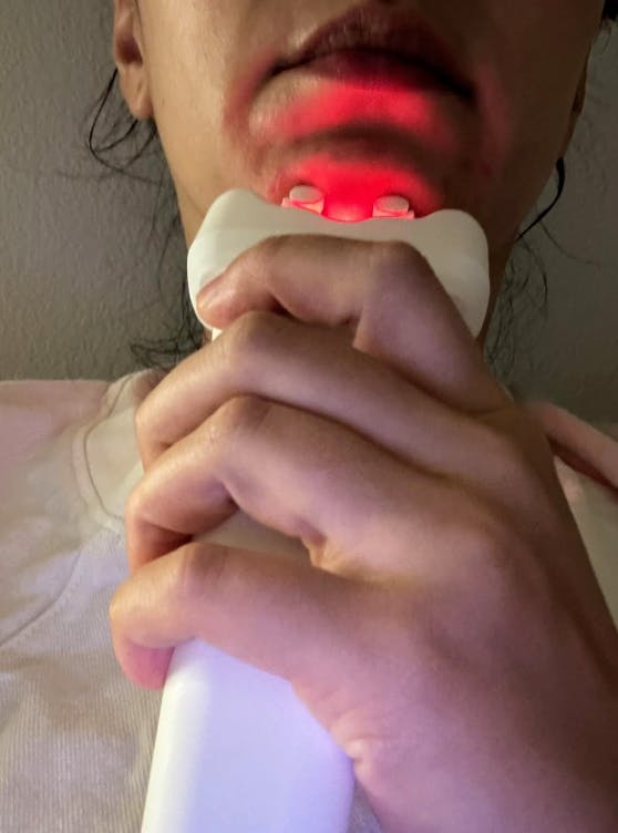 It lifts and tightens the skin using RF heat, reduces puffiness with microcurrent, and boosts glow with red/infrared light. It helps define the jawline, smooth fine lines, and make your skincare products work better.